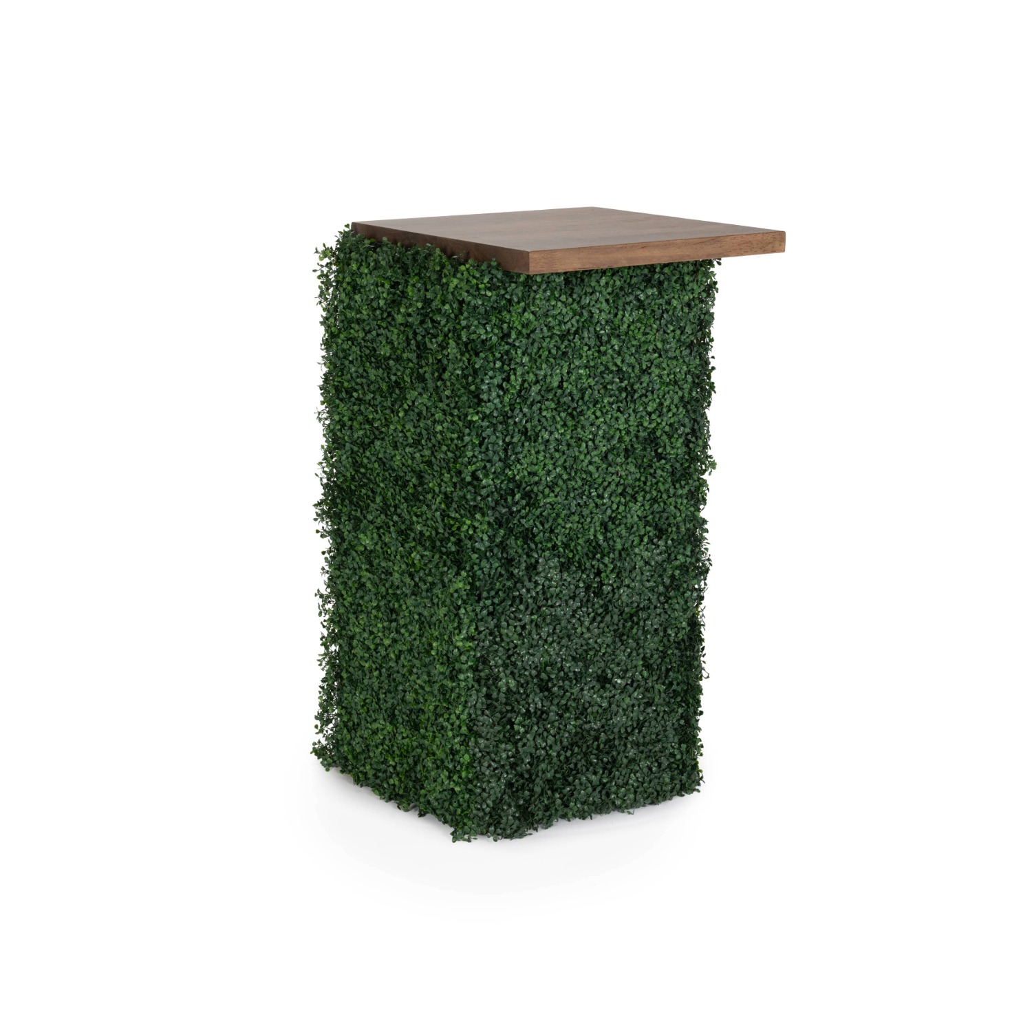 Modern End Column with a facade of Boxwood Hedge with Butcher Block Top