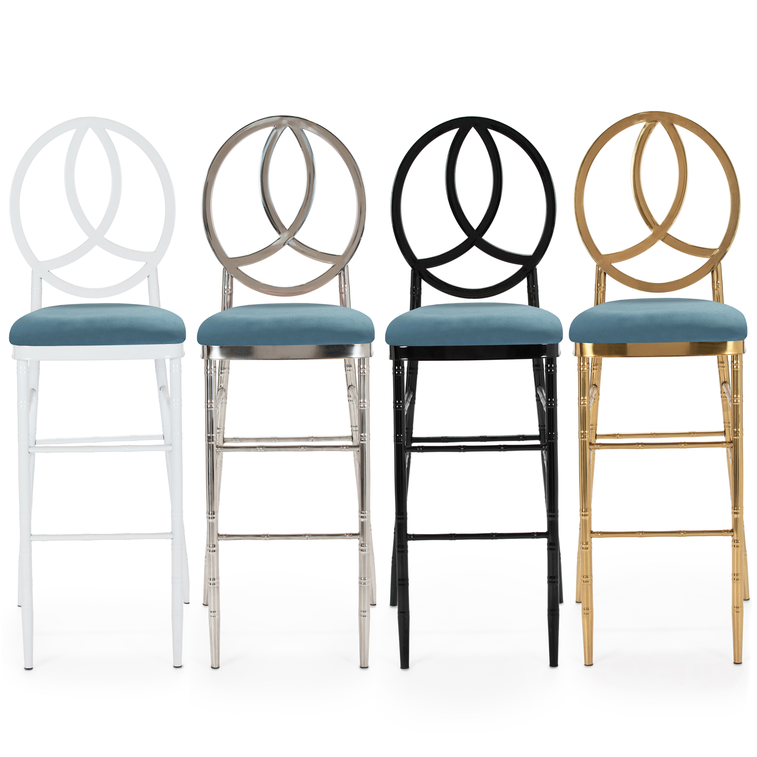 White, Chrome, Black or Gold Frame with Slate Blue Velvet Cushion