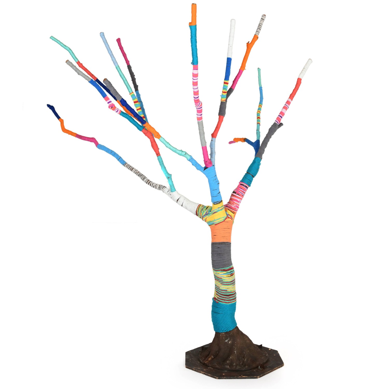 Artifical Tree Wrapped in Colorful Yarn